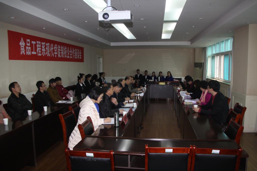 12月23日上午,食品工程系在公司第二会议室召开漯河职院(食品工程系)“深化校企合作 开展学徒制试点”座谈会,郑州市仟吉食品有限公司运营总监陈瑞华、招聘课长王云龙;思念集团千味央厨食品股份有限公司副总经理刘庆伟;天瑞集团天津分公司人力资源部经理苏玉霞、主管闻芳韵;公司党委委员、常务副经理吴玉堂、教务处处长贾新政、实训中心主任张勃、就业处处长潘玉尚、员工处处长程传蕊;督导室主任赵建功、食品工程系班子成员、学徒制项目组成员、学徒制班班主任和员工代表参加了会议,会议由食品工程系主任李文典主持。