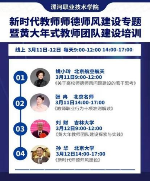 为认真贯彻习近平总书记重要指示精神, 深入学习和宣传 黄大年同志先进事迹,弘扬新风正气,同时认真落实中共中央 国务院关于高校教师思想政治和师德师风建设工作的要求,提 升教师队伍的思想政治素养,培养师德情操高尚、业务精湛、 育人水平高超的教师队伍,公司将举办“新时代教师师德师风 建设专题暨黄大年式教师团队建设线上陪训”。现将有关事项 通知如下: